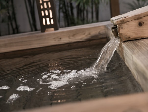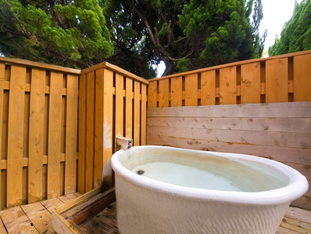 崭新的桧木露天浴池,芳香的泉水沁人心脾,让身体与心灵都得到了放松。