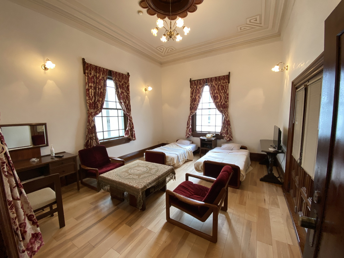 | 客房设备·备品 | 电视(无BS频道)/ 电话/ 茶具/ 冰箱/ 吹风机/ 熨斗(出借)/ CD播放机(出借)/ 盒式录音机(出借)/ 独立空调/ 温水洗净坐便(部分客房)/ 香皂(固体)/ 香皂(液体)/ 沐浴液/ 洗发液/ 护发素/ 牙具/ 剃刀/ 浴帽/ 梳子/ 毛巾/ 浴巾/ 浴衣/ 拖鞋/ 婴儿床(出借)/ 台灯(出借) ※无线网络(免费) |